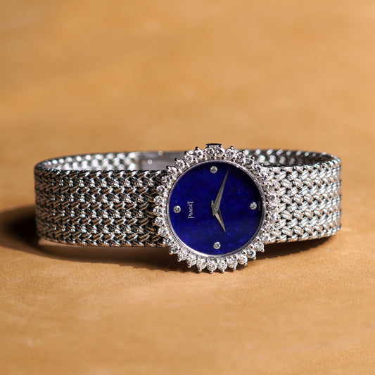 Piaget bracelet watch, Ref. 924D4, Lapis Lazuli dial, Diamond bezel, White Gold