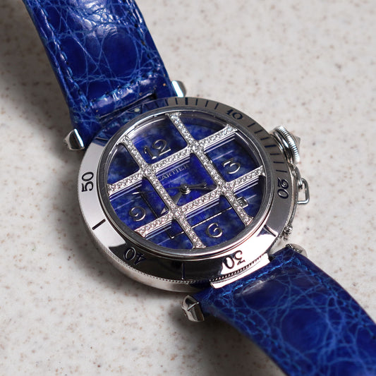 Cartier Pasha, Lapis Lazuli Dial and Diamond Grill, White Gold