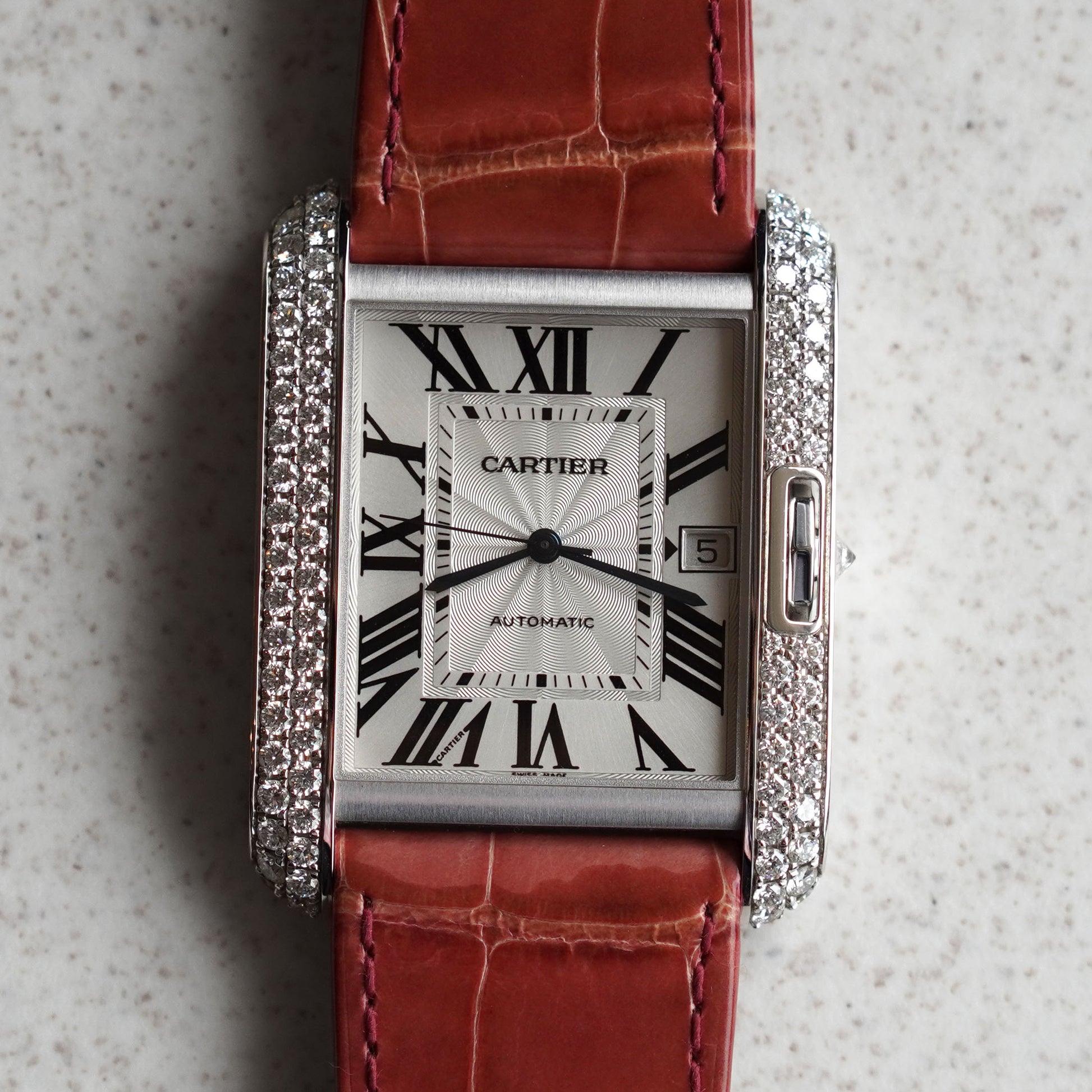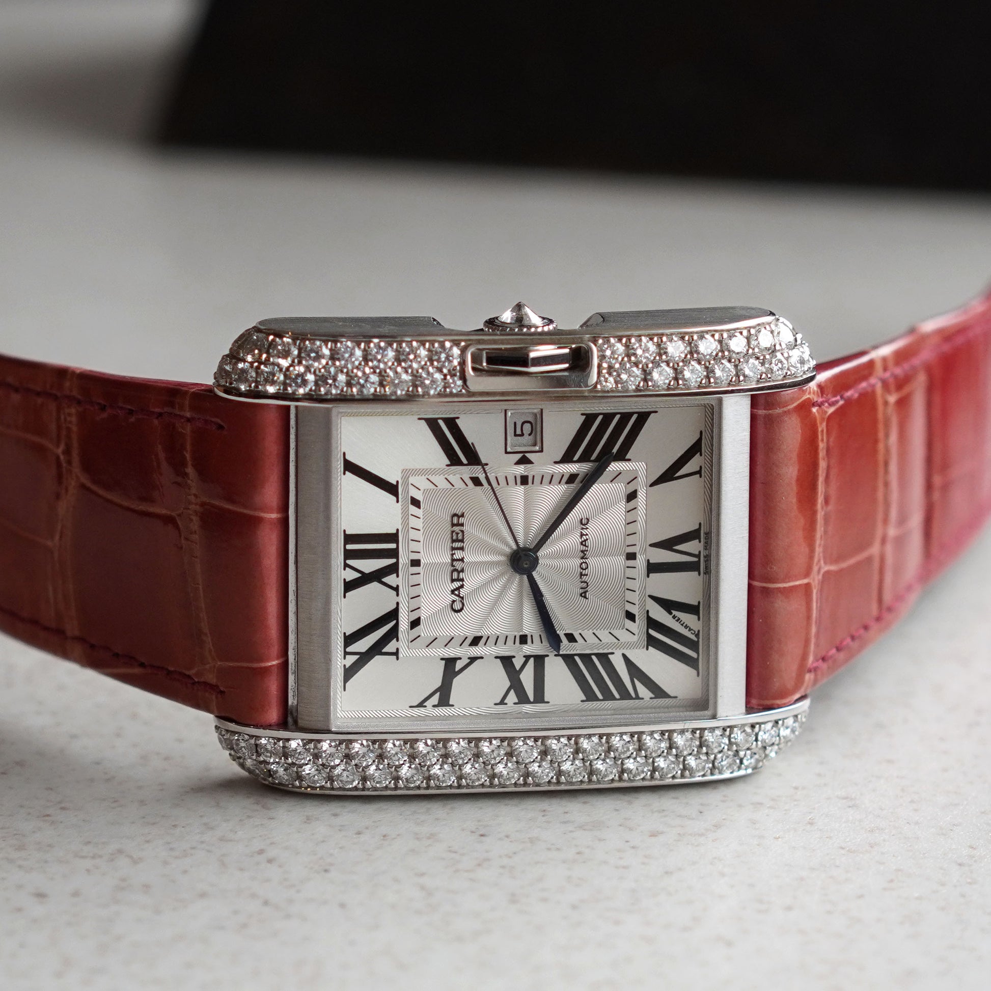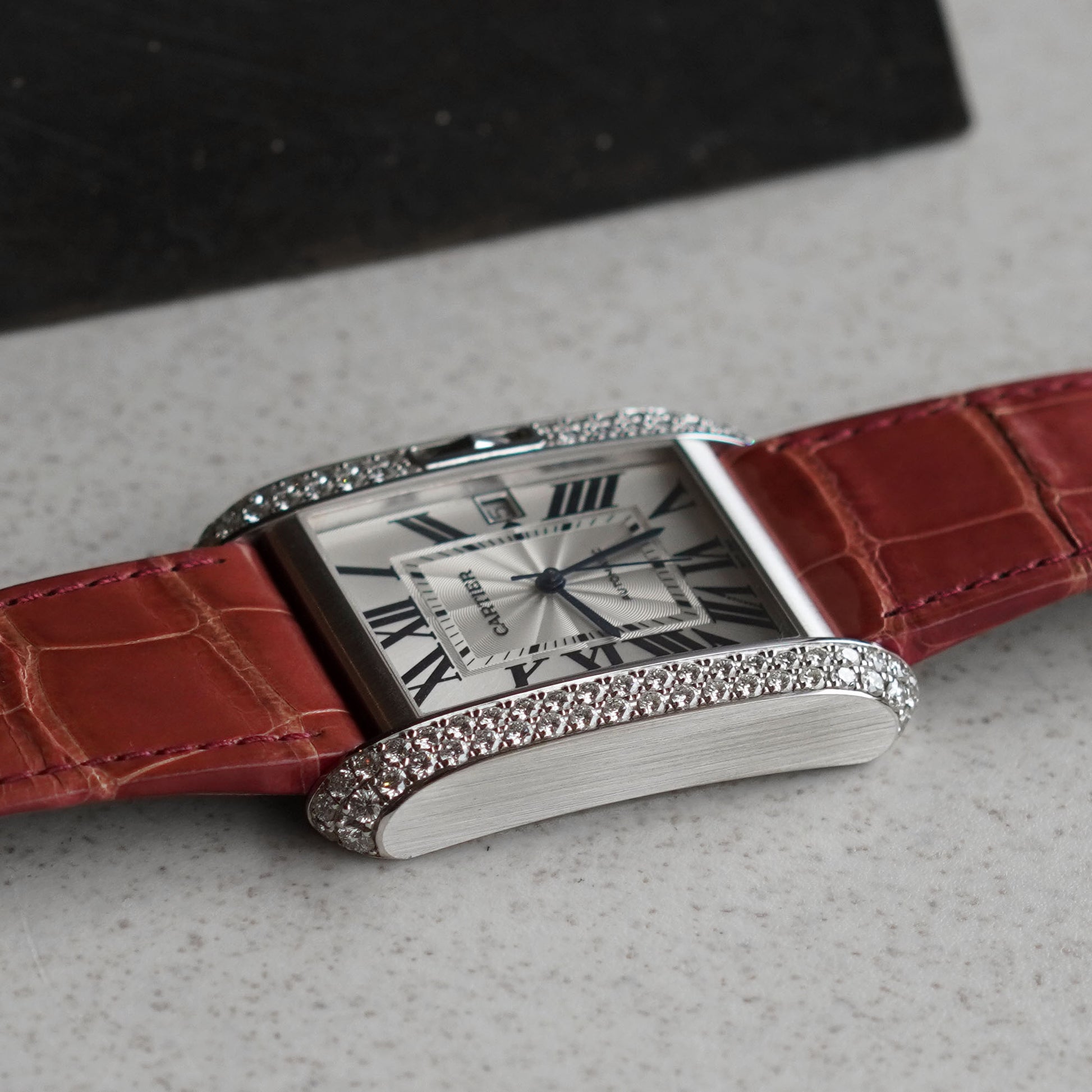 Cartier Tank Anglaise XL with Date and Cartier Factory Diamond Bezel, New Old Stock, White Gold