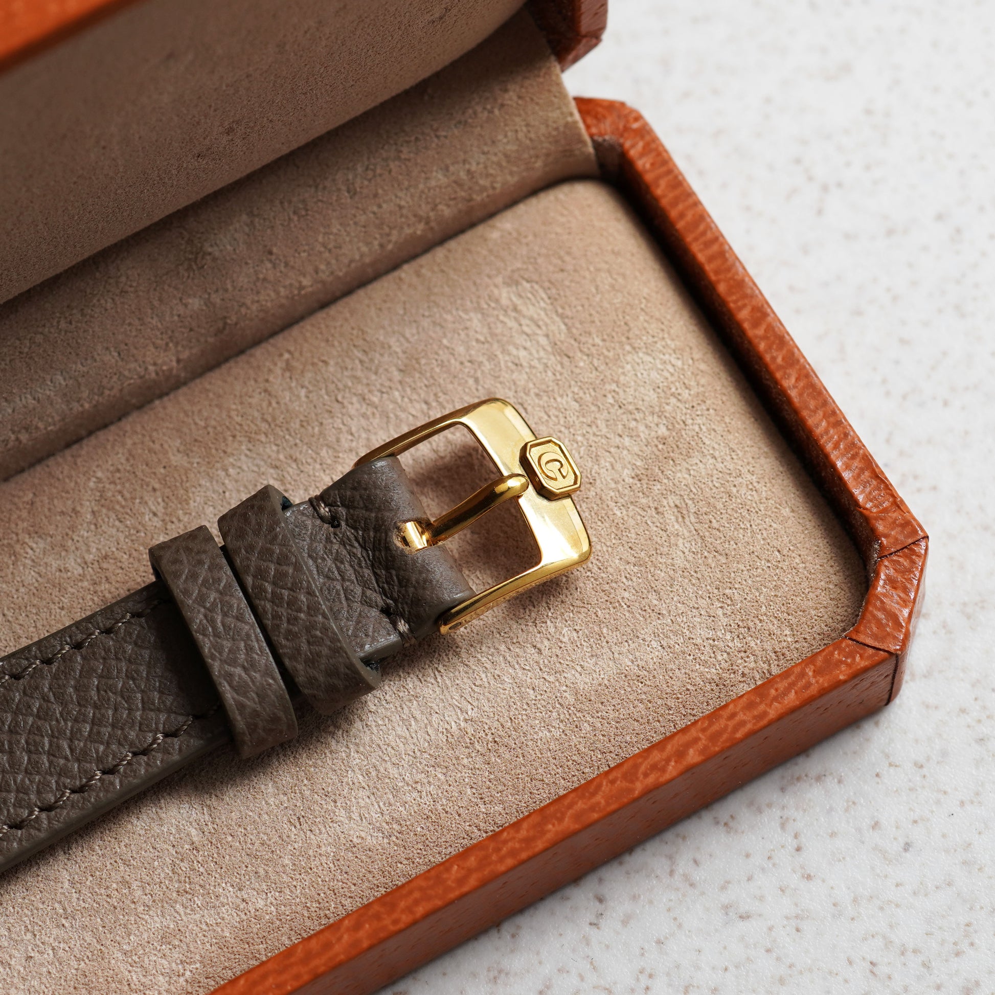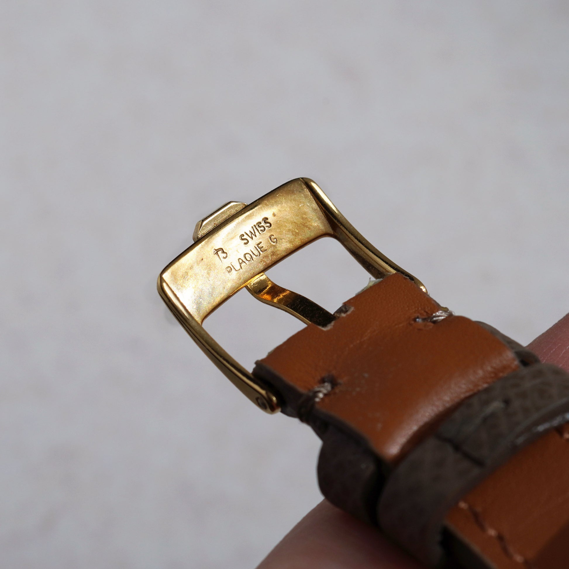 Unsigned leather strap, Chopard gold plated tang buckle |