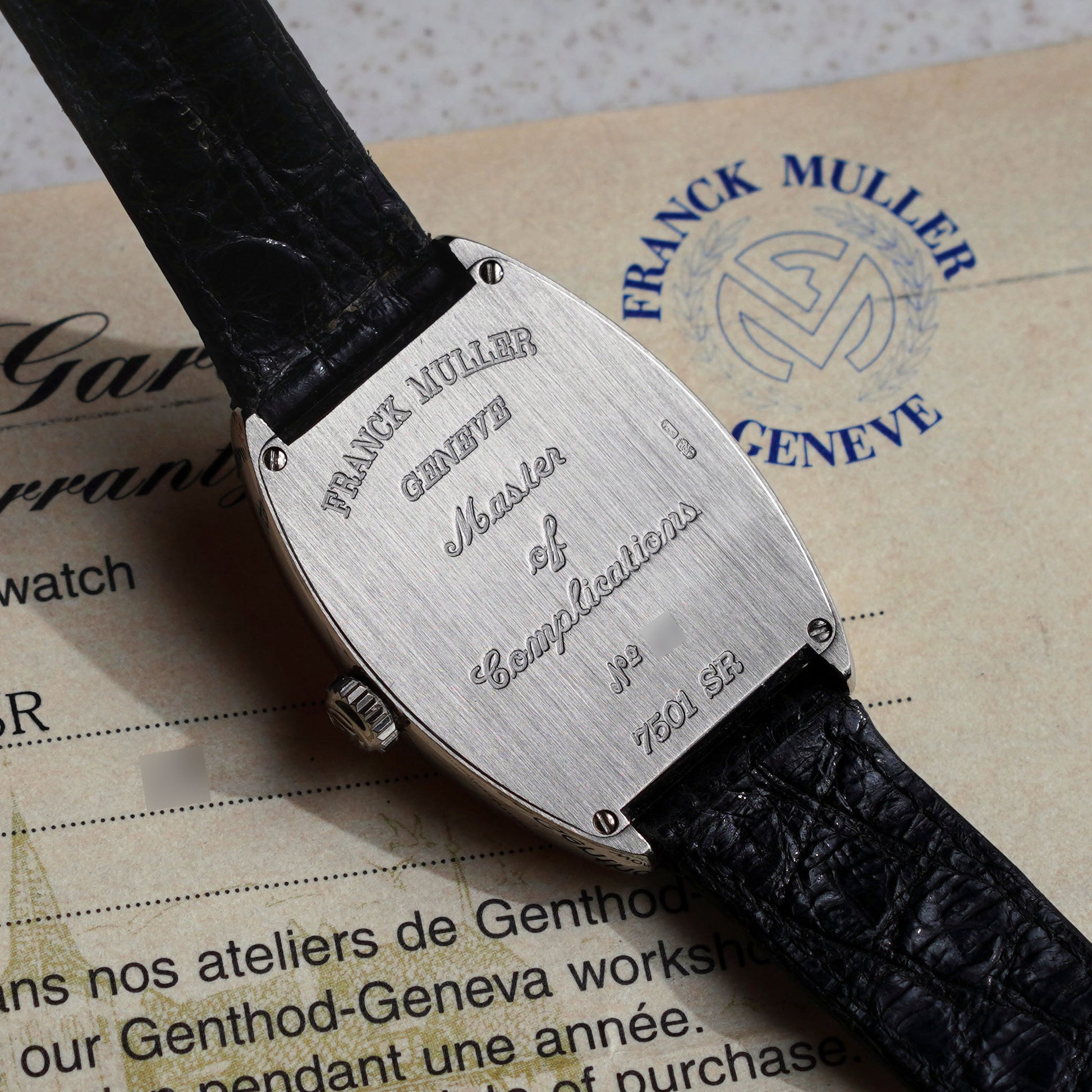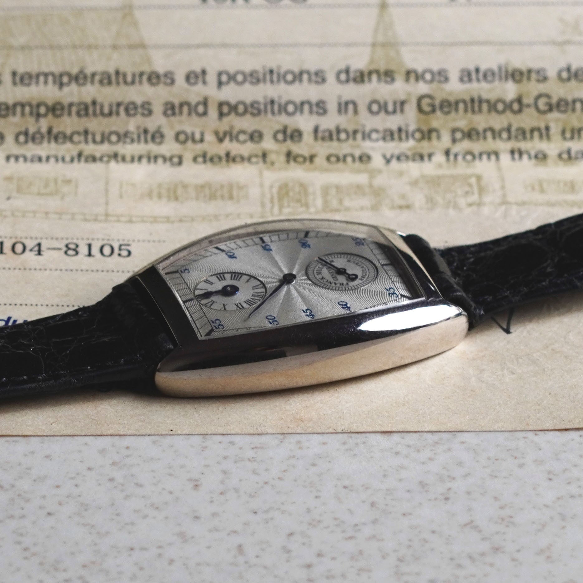 Unsigned leather strap, Franck Muller steel deployant buckle |