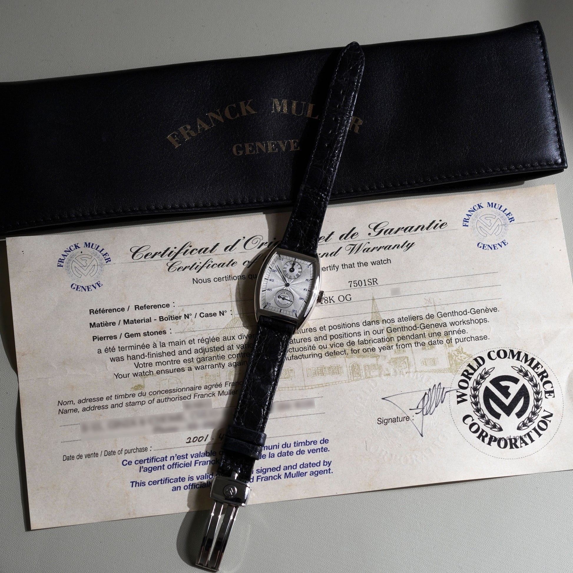 Certificate of Guarantee and leather pouch |
