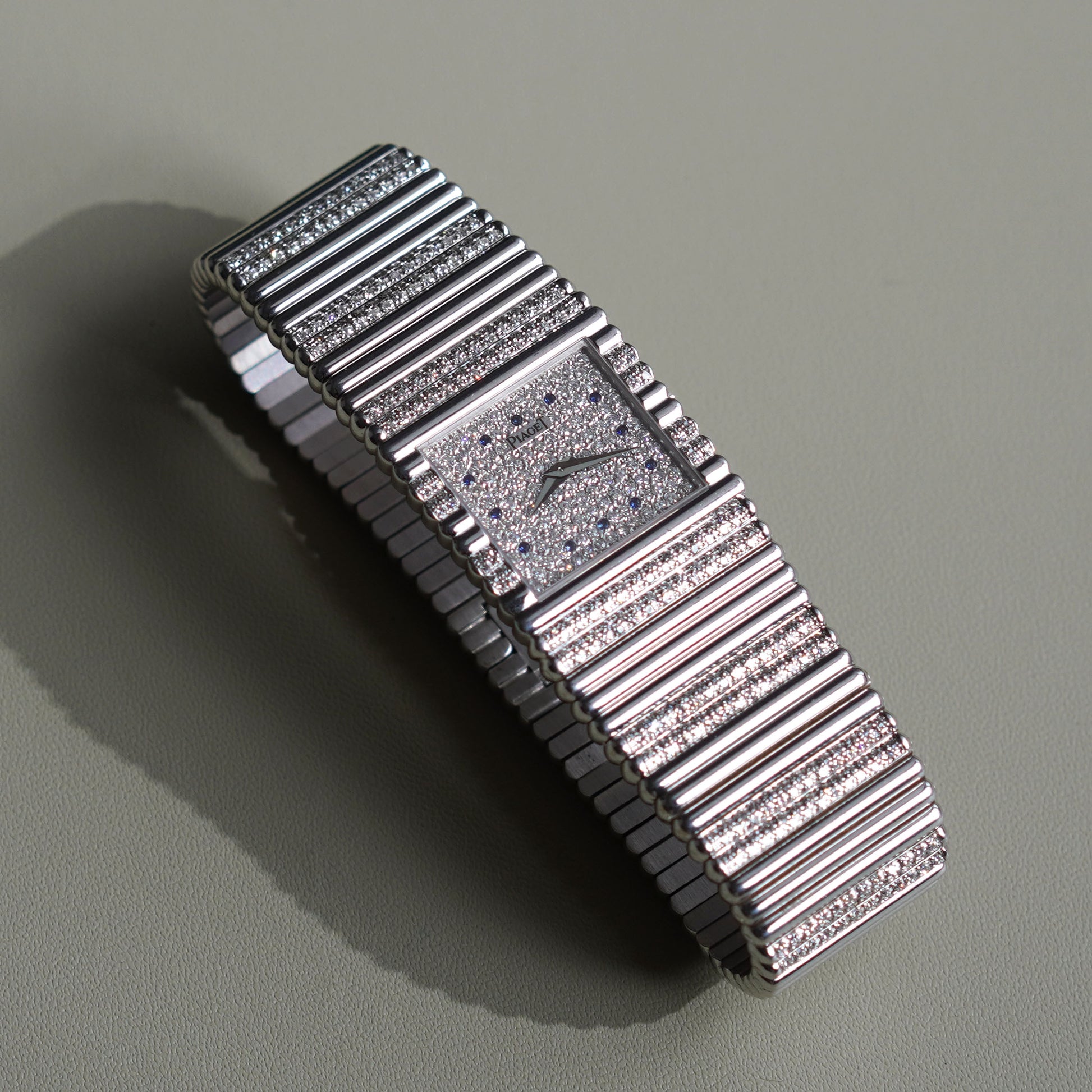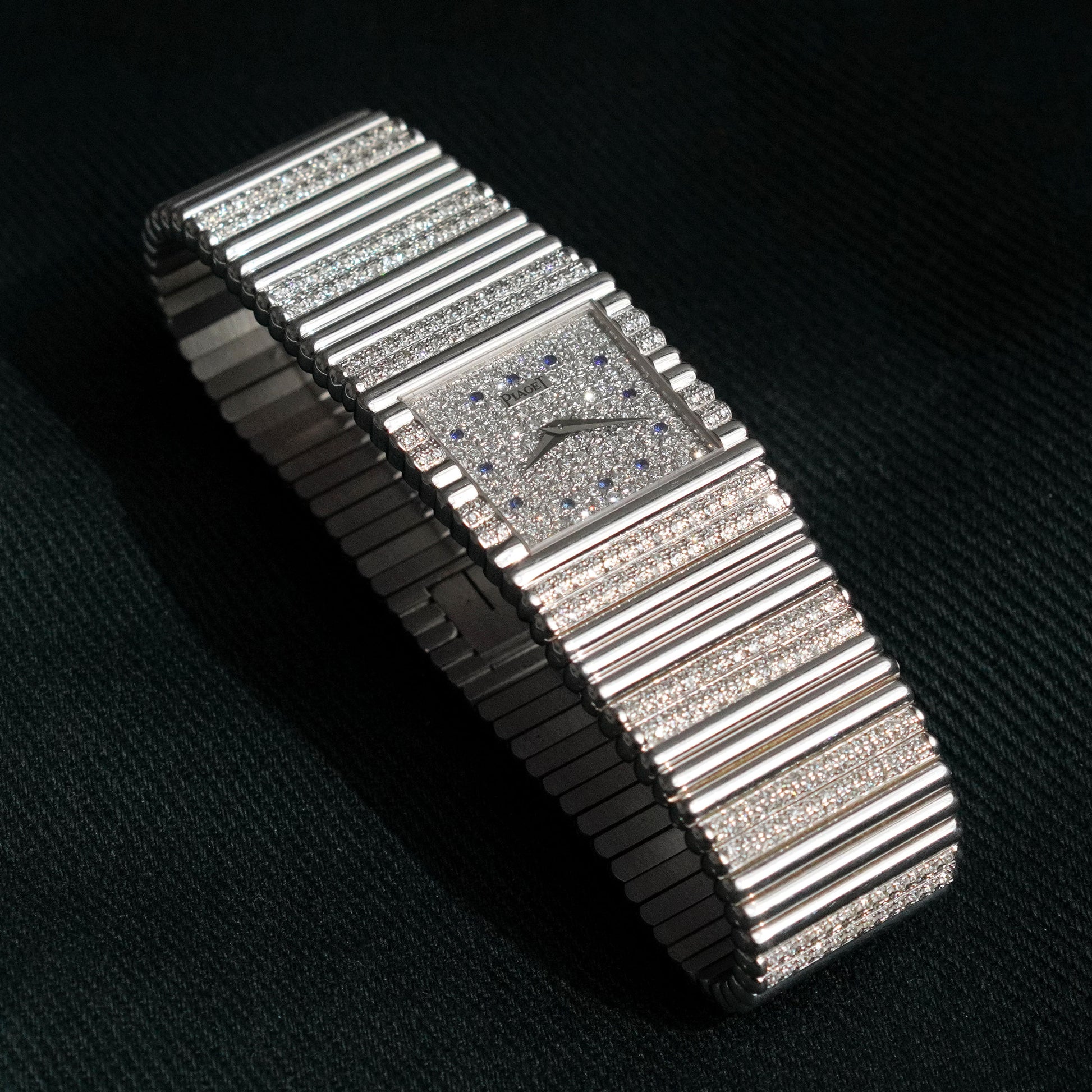 Piaget Emperador, Factory-Set Diamond Dial with Blue Sapphires and Diamond Bracelet, White Gold